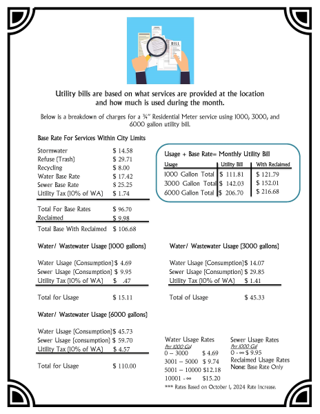 The City of Edgewater provides a monthly utility bill.  It is often confused as a “water bill” when it is compared to other nearby communities’ monthly water bills. Your monthly utility bill is all inclusive (water, sewer, stormwater, garbage and recycling). In other cities many of these services are billed separately through annual tax assessment.